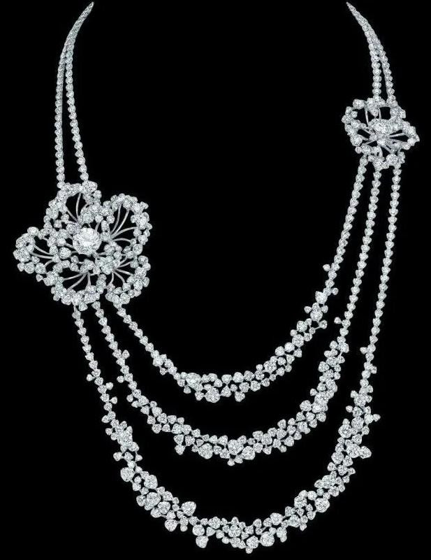 其中包括多层次珍珠项链、珍珠镶嵌耳环、山茶花胸针,其中一款由683颗钻石镶嵌的18K金山茶花钻石项链价值就高达百万美元