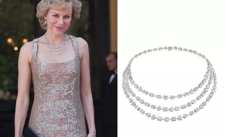 为了更好地衬托出王妃的气质,电影特地选用了萧邦打造的打造的高级珠宝,其中以两条钻石项链最为吸睛