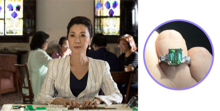 以电影中扮演婆婆的杨紫琼为例,就佩戴了来自Mandalay、Carnet等的高级珠宝,杨紫琼甚至还佩戴了私藏的价格超300万的祖母绿戒指,把豪门贵妇的雍容华贵演绎得淋漓尽致