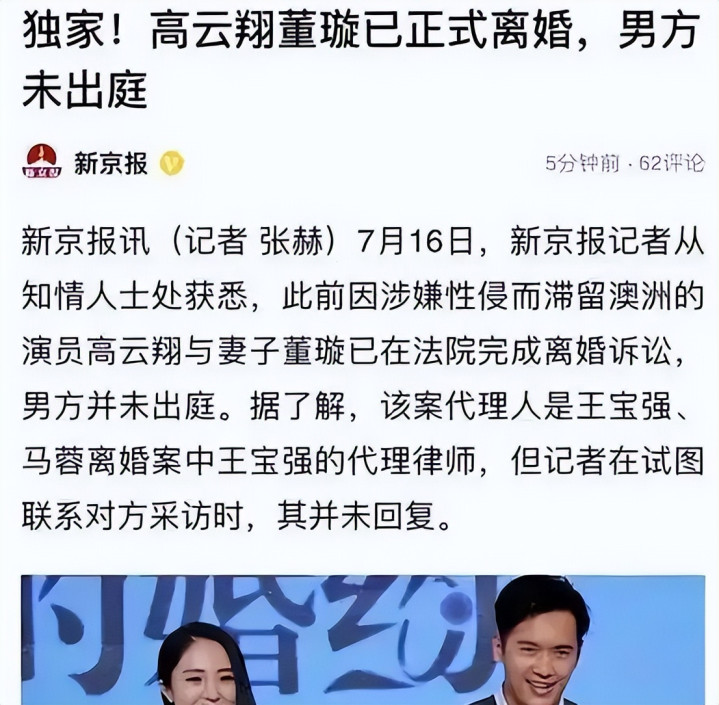 新京报|回顾高云翔董璇结婚八年:从模范夫妻到两大官司缠身