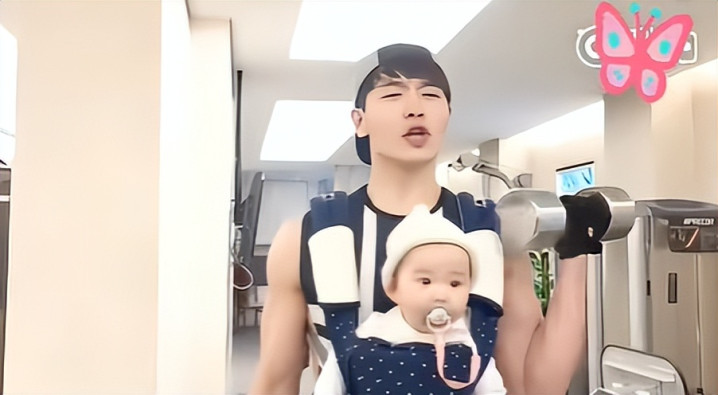 高云翔会背着女儿健身,董璇则在一旁记录下这美好的时刻。
