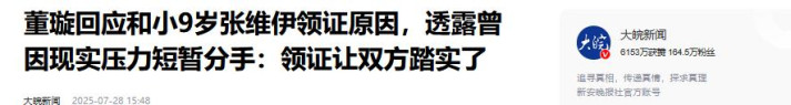 大皖新闻|董璇回应和小9岁张维伊领证原因,透露曾因现实压力短暂分手:领证让双方踏实了