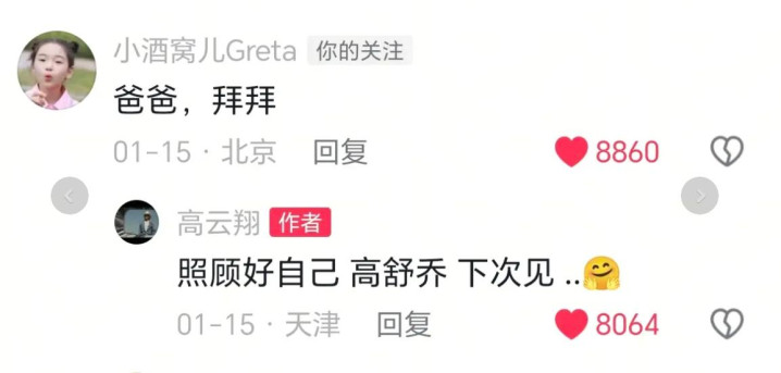 “照顾好自己,高舒乔,下次见”