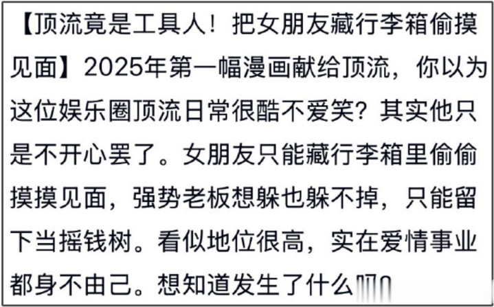 一会儿有狗仔用漫画暗示,一会儿有网友扒情侣同款,到了2025年,传闻更是升级了。