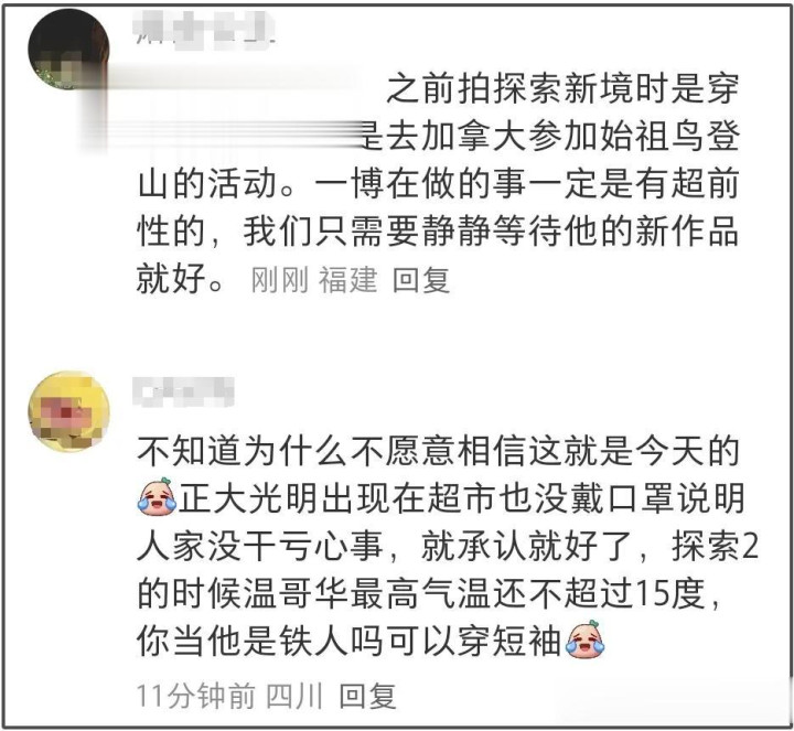 有人说,偶遇照是好几个月前拍的,王一博是去拍纪录片了;有人说偶遇照就是这几天拍的,王一博穿着短袖呢;有人说不管什么时候拍的,私人行程拒绝打探;有人说明明是公开行程商务活动,不要乱说话,王一博是去超市体验生活的。