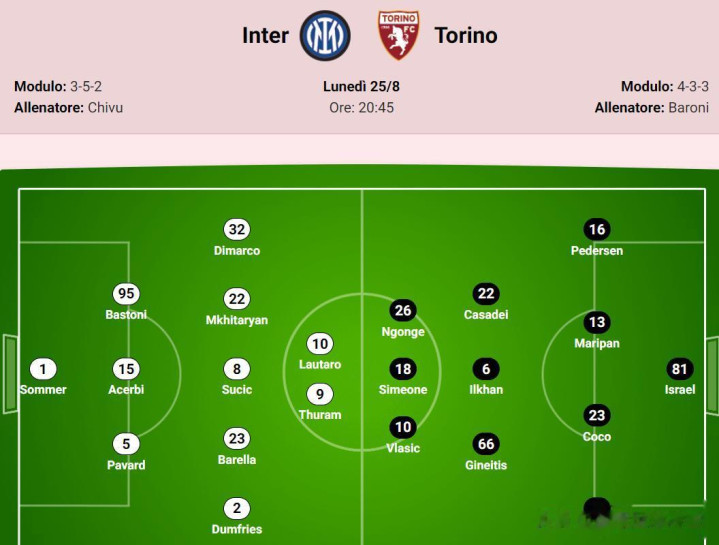 首轮对都灵,国米双星停赛(恰尔汗奥卢、皮奥·埃斯波西托),同时,泽林斯基、弗拉泰西等人至多只能参加1-2次合练,能坐上替补席就算好的。新援迪乌夫届时能否办好手续也不一定,因此,国米中场其实选择不多。