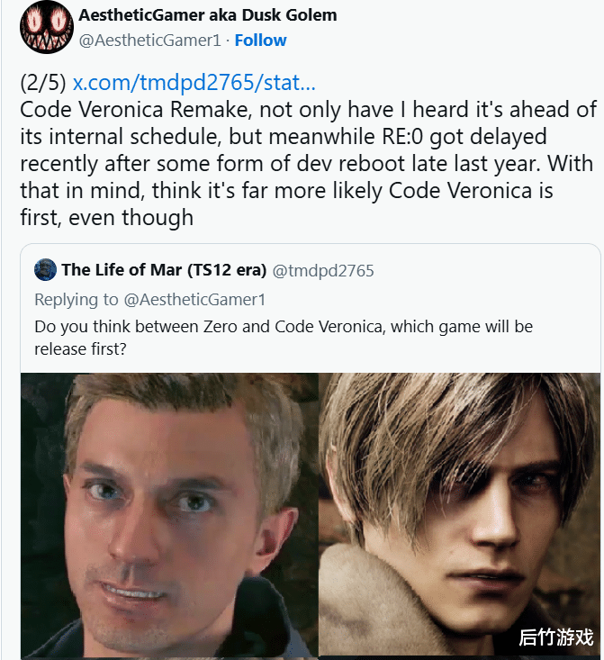 Dusk Golem是最早(2024年5月)爆料维罗妮卡重制项目的人。8月24日,他在社交媒体回答了粉丝的5个提问,随后透露维罗妮卡重制的开发进度提前,而《生化危机0》的重制因为“某种形式的开发重启”而遭遇内部延期。此变故发生在2024年末,原本0在维罗妮卡之前,现在反过来。