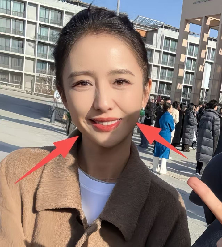 网友拍的照片里,她笑得自然,但眼角鱼尾纹浅浅的,额头褶子在光线下特别明显。