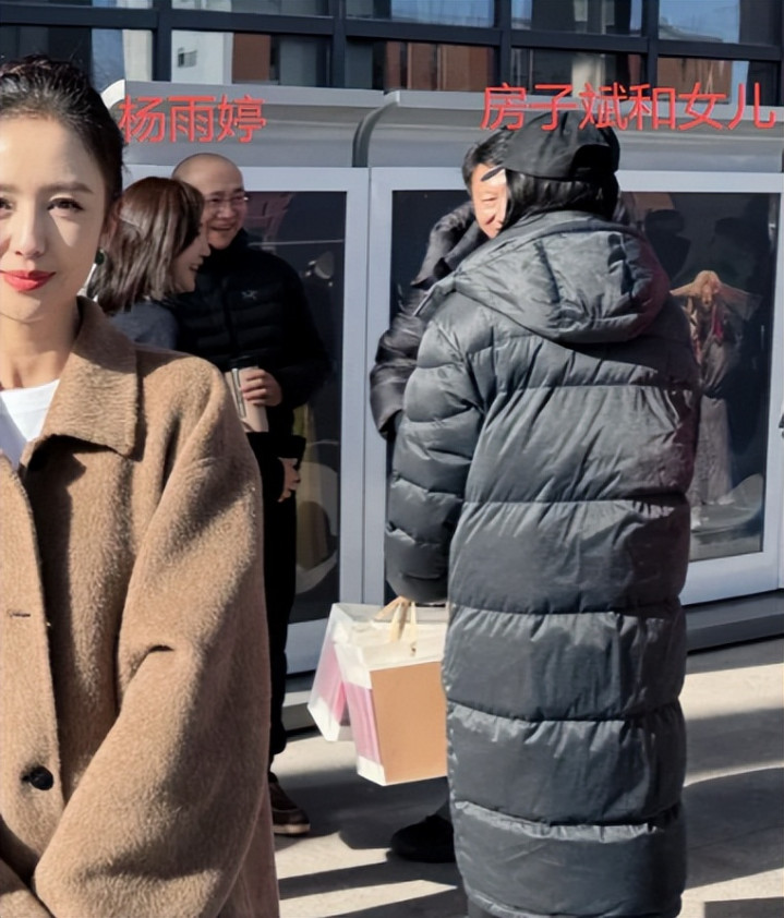 现场照片里,一家子站一块儿,房子名旁边站着老婆杨雨婷,女儿害羞地躲后面,画面好温馨。