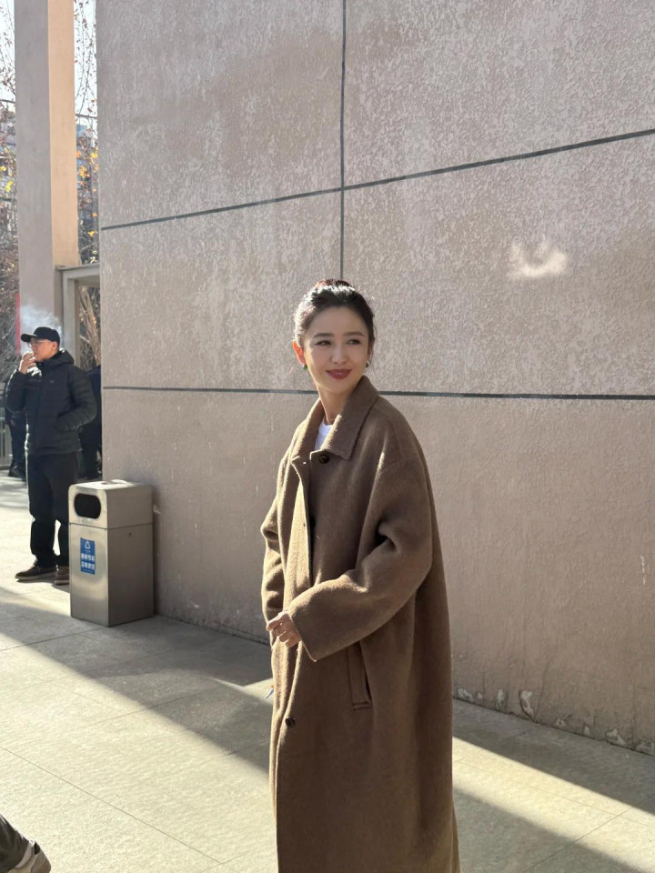 她从背后走来,一袭驼色大衣,宽松不张扬,头发随意扎起,没戴耳环手链各种首饰的,活脱脱像个普通阿姨去开家长会。