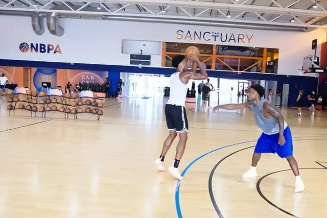 此前小史密斯提到和阿门一起训练。近日阿门在西班牙进行特训,他和热火后卫小米切尔进行了单挑。从网络上流出的视频来看,阿门在对位中有体型优势,他的持球和投篮有进步。