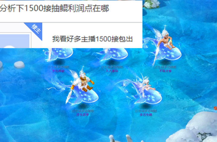 现在梦幻西游中有一部分玩家给自己开七夕祥瑞的时候是找那些主播帮忙的,主播开出来的价格是1500保底会出七夕鲲。所以就有些玩家很好奇,那就是现在的这些主播到底是靠什么来赚钱的?现在在情缘晶币抽奖玩法中抽出鲲的平均成本差不多也就是在1500左右。这么算下来,那些主播在帮别人开七夕鲲的时候都是亏钱的,运气好的情况下才能够赚一点。小编甚至见过某些主播怕亏钱,开鲲开了一半直接跑路了。