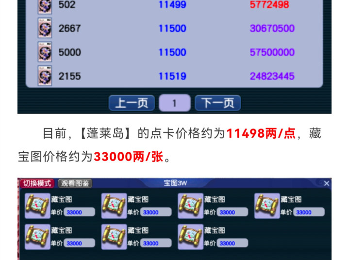 蓬莱岛是打图神区,一张宝图换三点卡,等级再低也不亏