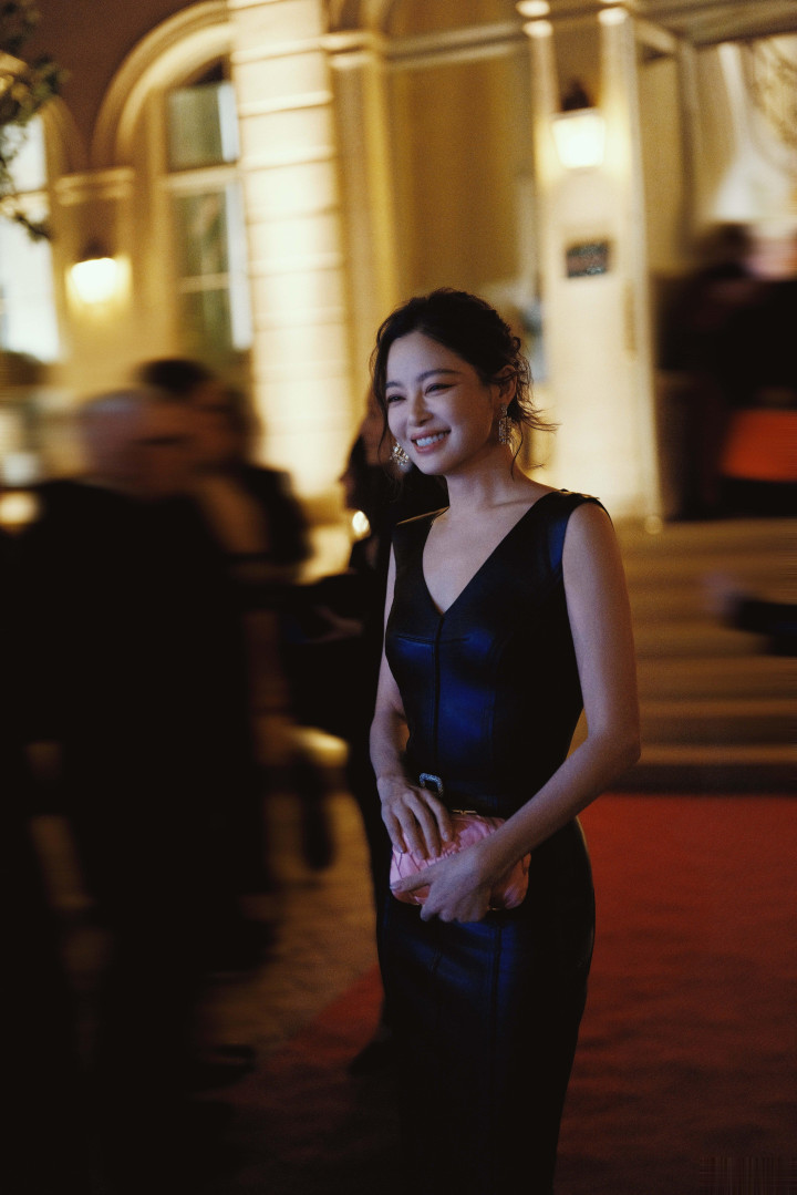 辛芷蕾亮相巴黎时装周, 穿黑色V领皮裙, 干练优雅, 影后就是影后