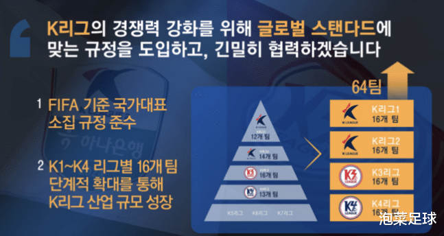 由于K3的改革,原有的K4联赛升降级制度也进行了改革。韩国足协的目标是在2026年将K3球队变为16支,因此,今年不再接受K4冠军和K3倒数第一的比赛。改为K4联赛有升级意愿的球队,在6月30日向联盟报名,如果夺冠则直接升级,如果亚军,则再与K3的倒数第一进行比拼。这样的奇葩赛制,会有受益者吗?当然,如果这个队希望打职业,可以通过先参加K4升级K3,然后再通过申请K2资格,通过K3到K2。其实这个方式也就表明,未来不再接受新成立球队直接参加K2联赛的可能,新球队必须从K4打起,一步步再来。