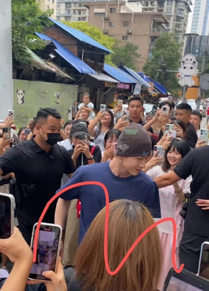 白敬亭现身成都某门店, 近照好帅十分秀气, 现场好多粉丝人气很高