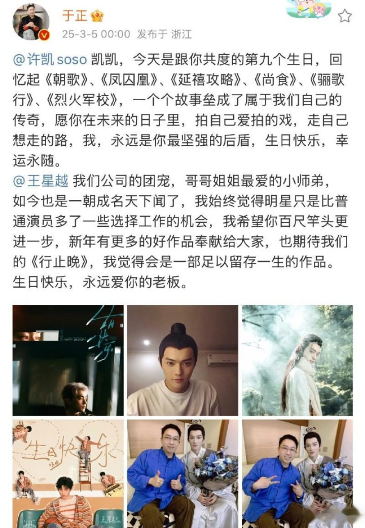 王星越这是嫌老板于正还不够忙吗? 欢娱娱乐一哥许凯今天被曝光恋情争议,甚至被指控劈腿、出轨等争议,老板于正亲上前线开直播辟谣!