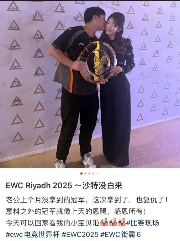 xiaohai的妻子分享了亲吻的照片,并写道:EWCRiyadh2025~沙特没白来