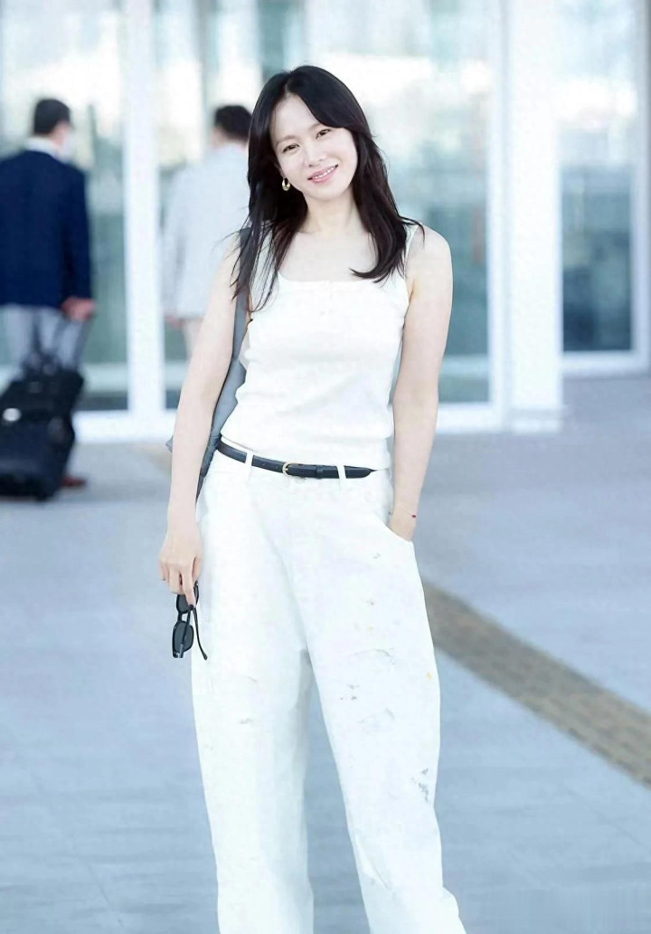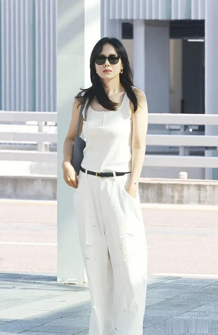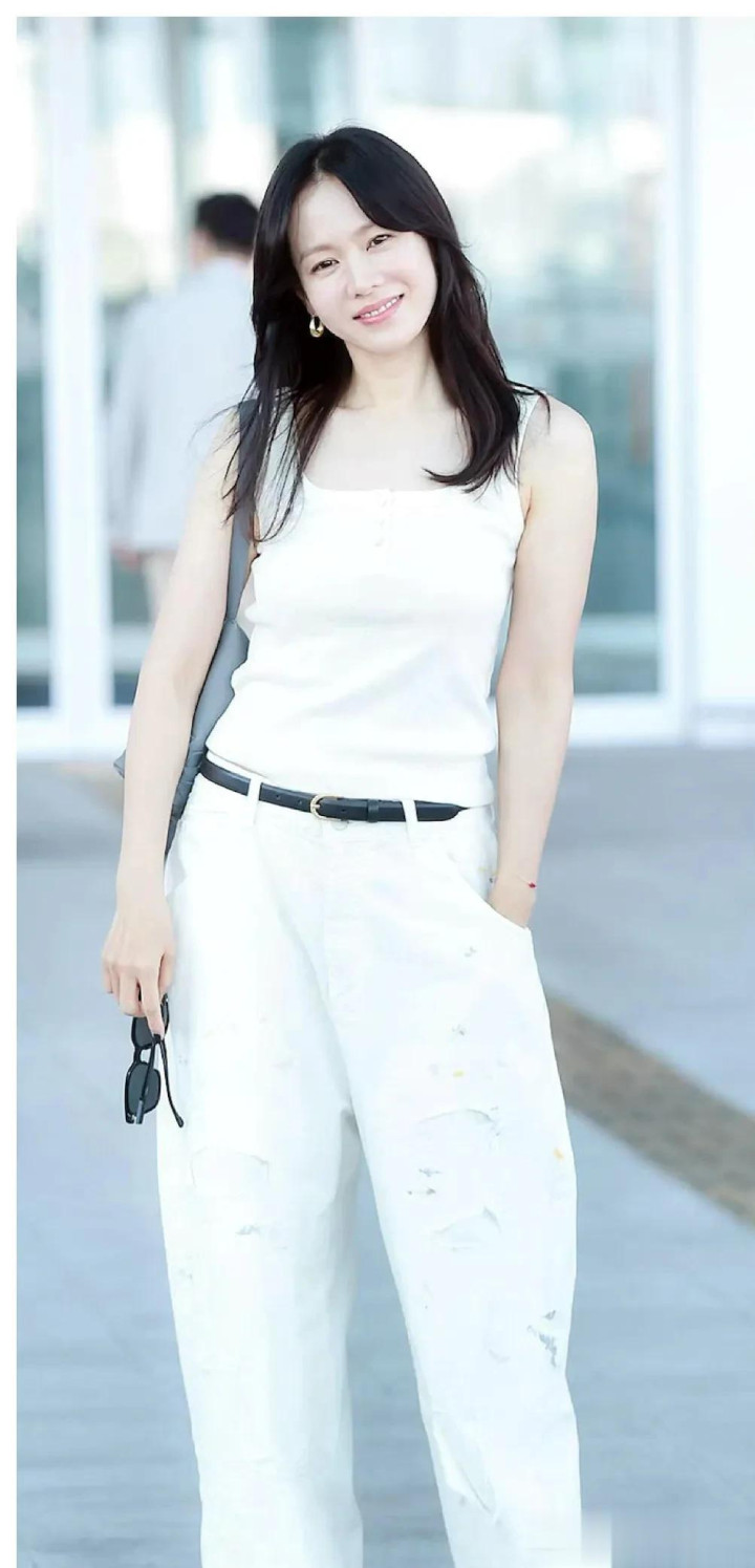 孙艺珍今日出发意大利参加威尼斯电影节, 一身白色穿搭又美又飒