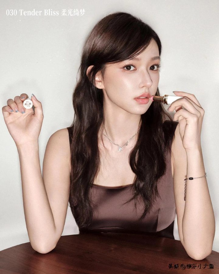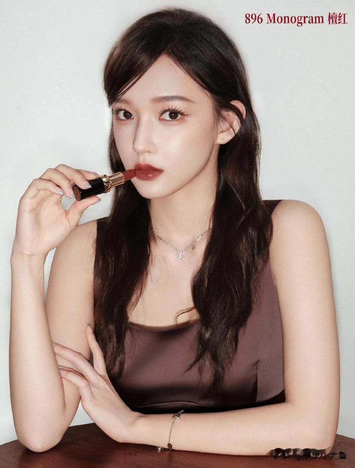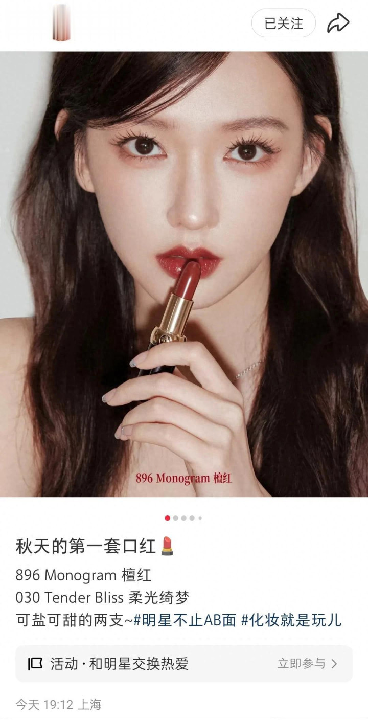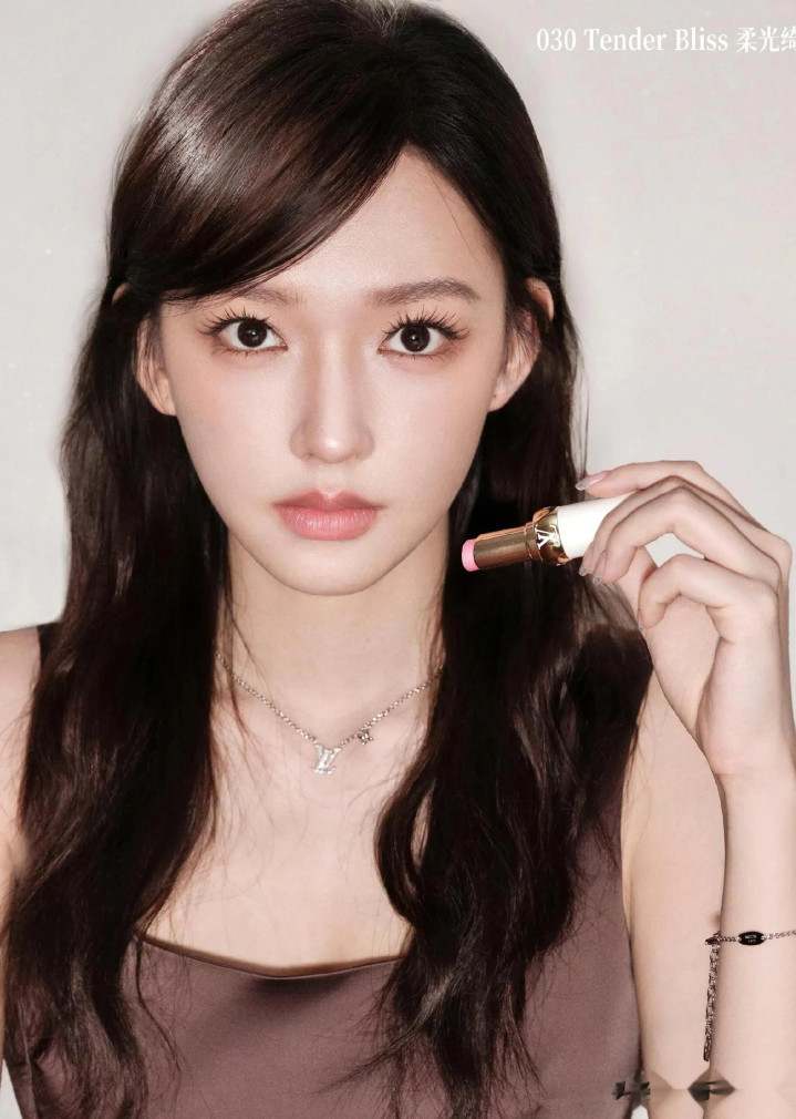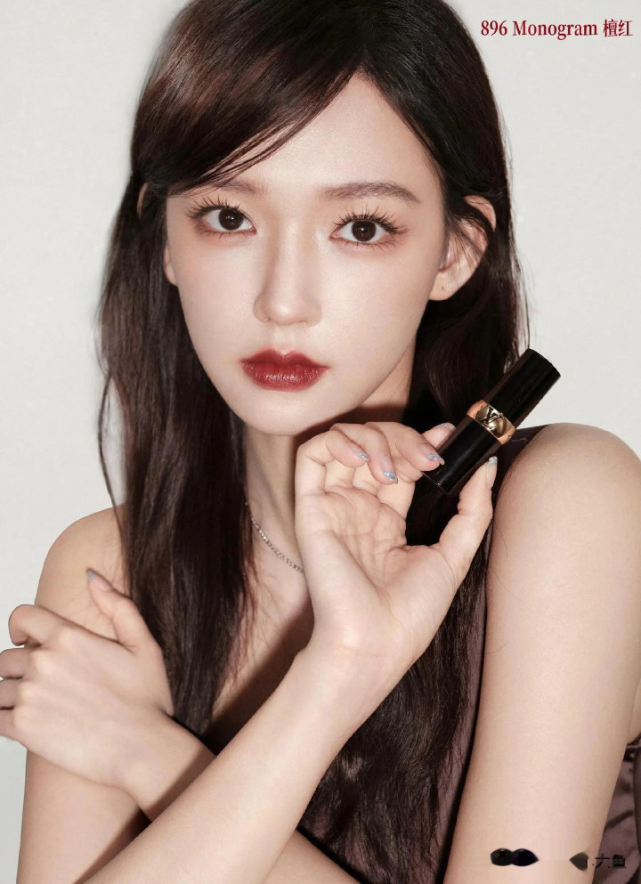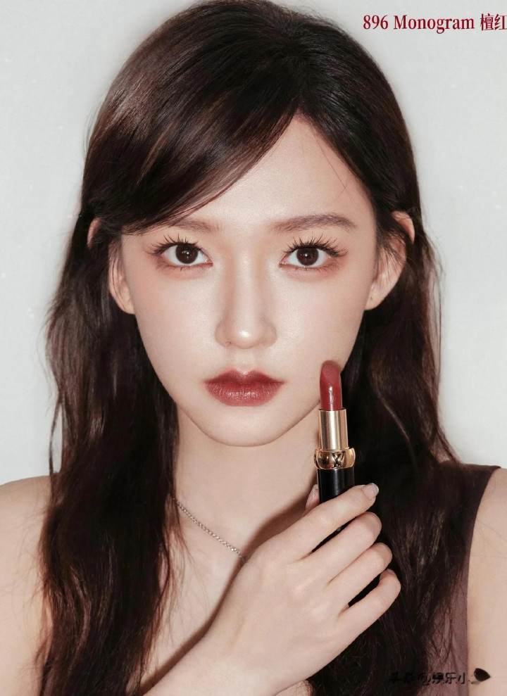 程潇今日分享口红广告大片, 一袭浪漫波浪卷, 美得让人移不开眼睛